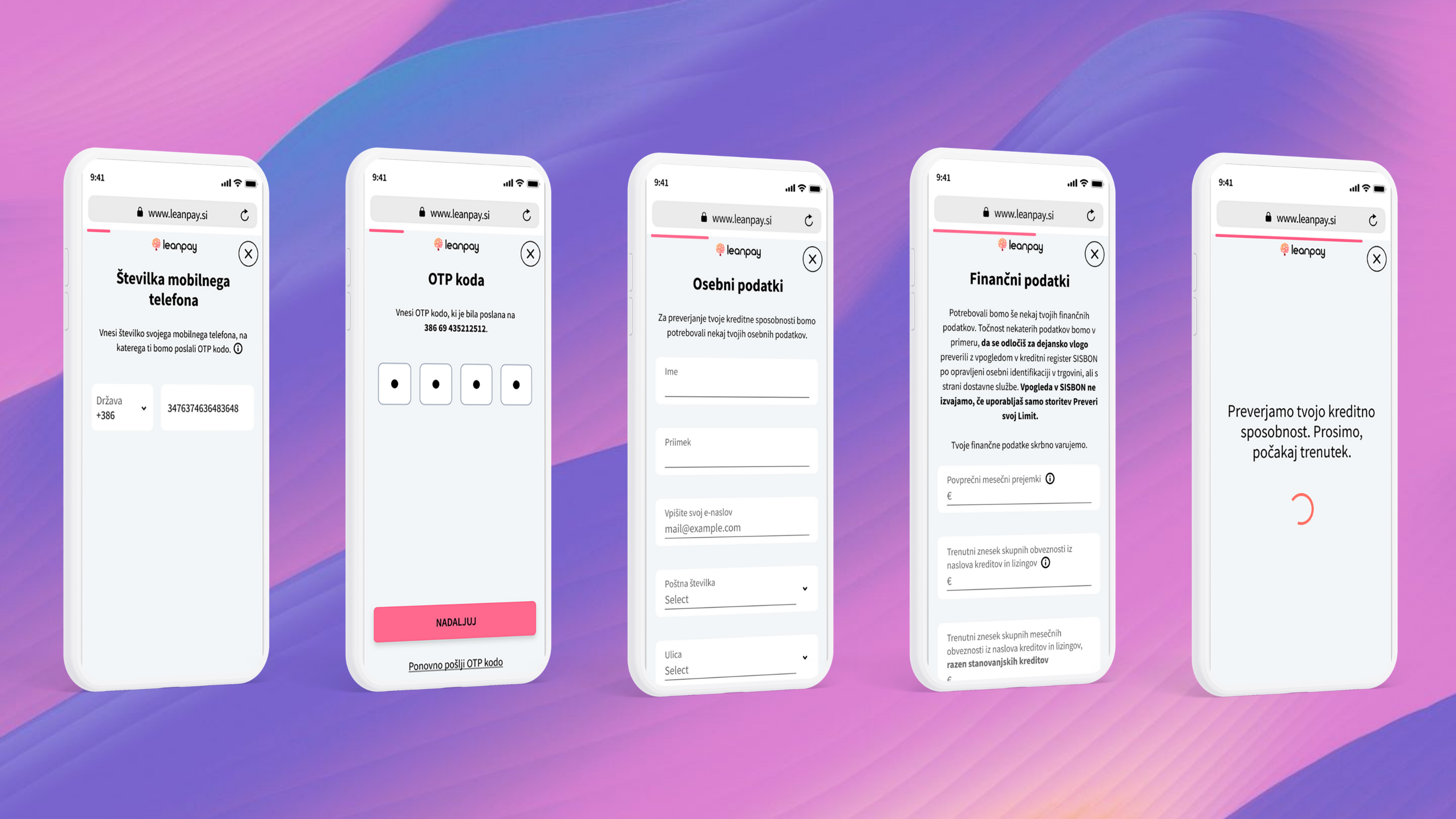 - ⏱️ Hiter postopek: Leanpay limit preveriš preko telefona ali računalnika, brez dokumentacije ali poti na banko.